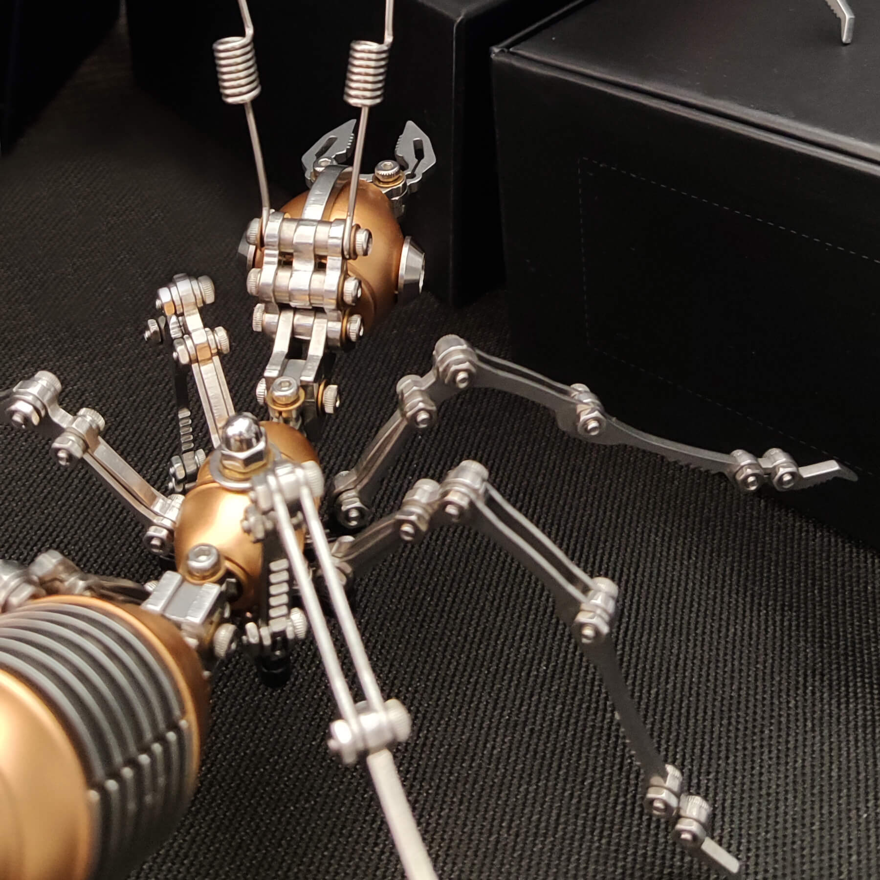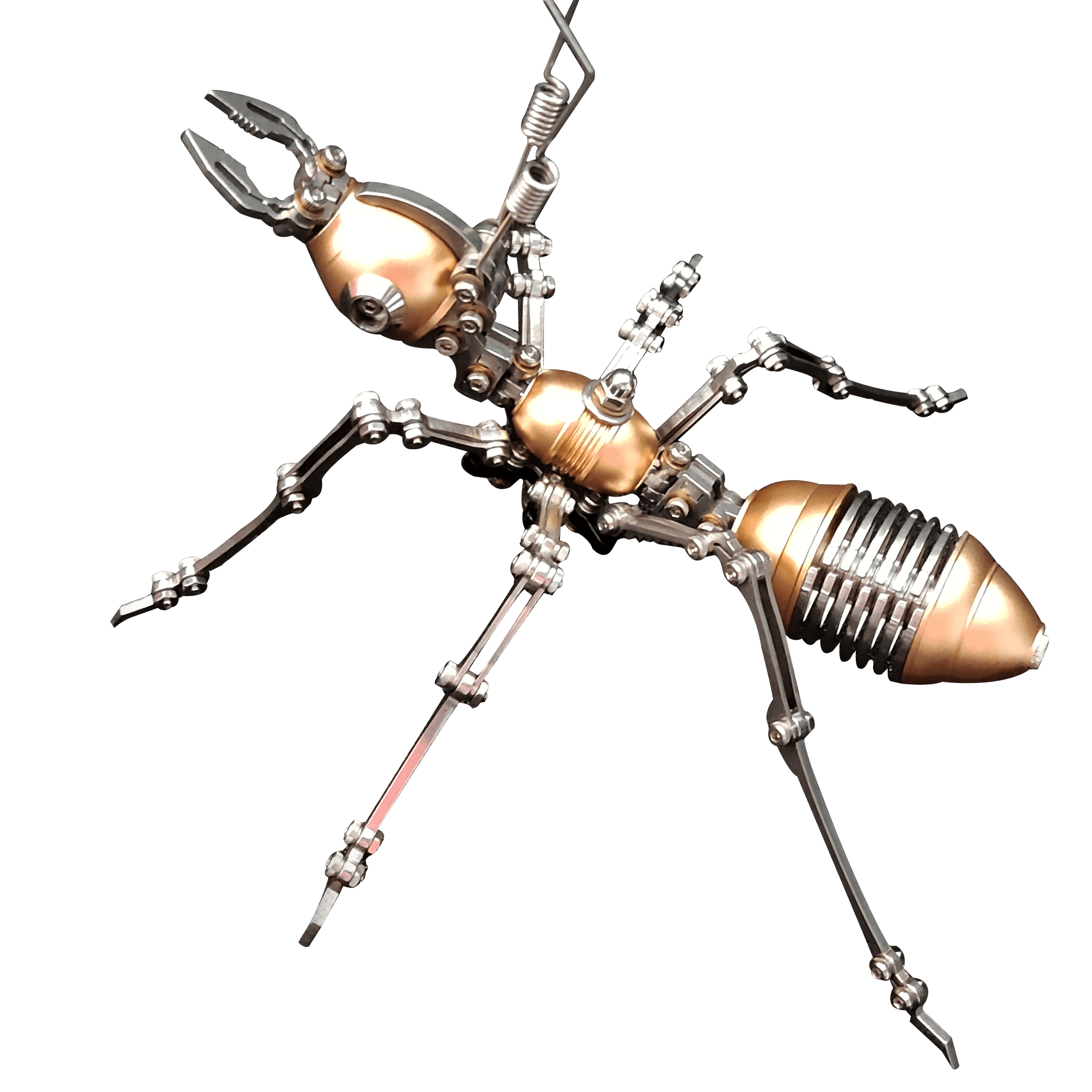 - Inspirándonos en la vida, diseñamos el modelo de hormiga de metal y lo llamamos Yalei. Su cuerpo está repleto de elementos metálicos, lleno de una sensación futurista. Está hecho de acero inoxidable, aluminio y cobre, con una sensación de robustez. Cada articulación del cuerpo se mueve libremente y puedes moldearlo para crear la dinámica que mejor se adapte a ti.