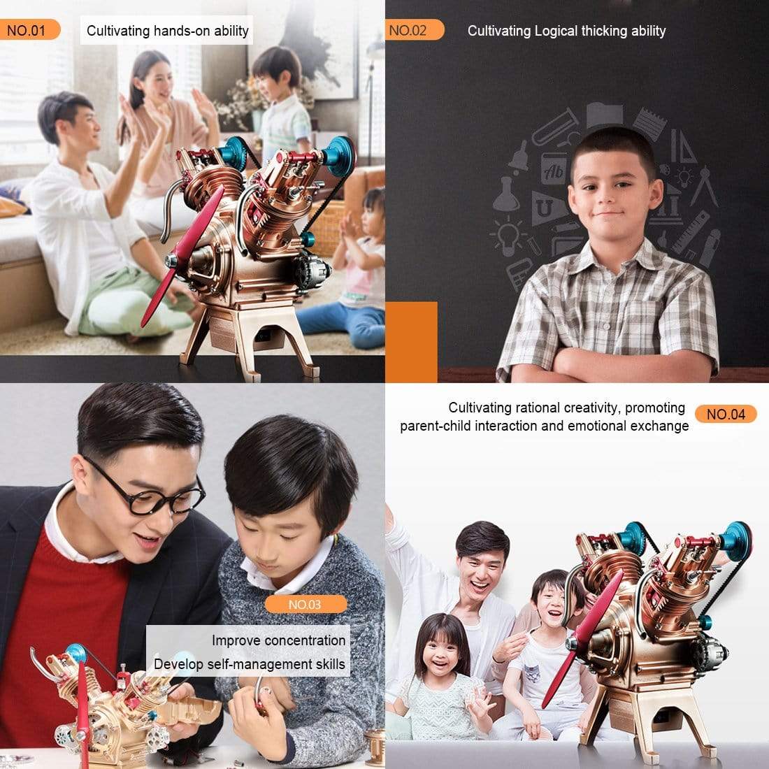 Modelo de motor de coche totalmente metálico, mini ensamblaje manual V2, juguete de doble cilindro, colección, decoración