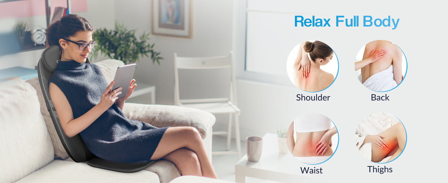 Ya sea en casa o en la oficina, puede sujetar un masajeador de silla a su silla de oficina o colocarlo en su sofá, sillón o sillón reclinable para disfrutar de un masaje relajante. Es un regalo perfecto para mujeres, hombres, personas mayores o amigos. Si por alguna razón no está satisfecho con el producto, puede devolverlo dentro de los 30 días para obtener un reembolso completo.