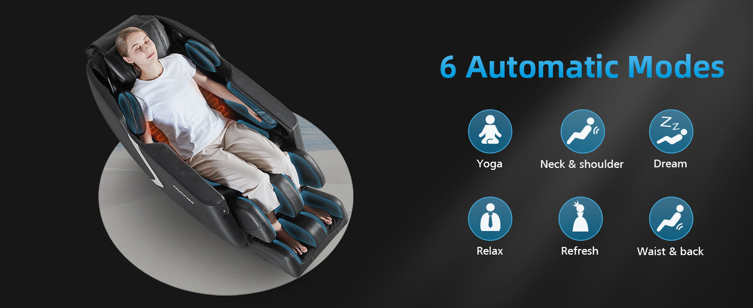 El masajeador reclinable Comfier cuenta con 6 programas automáticos: Refrescante, Relajante, Yoga, Cuello y Hombros, Cintura y Espalda, y Sueño, lo que le permite realizar un masaje corporal completo rápido y cómodo. También puede usar fácilmente el controlador manual para personalizar libremente el modo de masaje que desee.