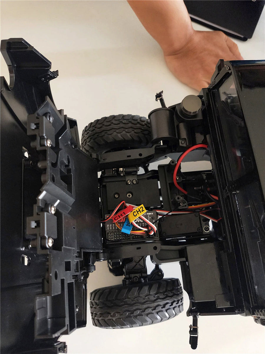 - El servomotor de dirección HG P415 de 9 g se puede operar de forma remota para cambiar de marcha.