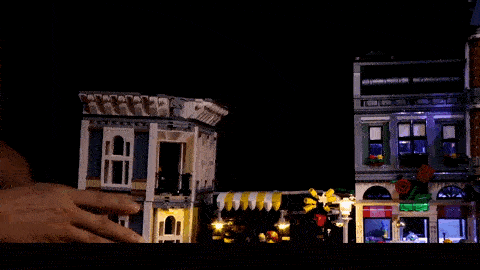 LEGO Assembly Square #10255, deja que los pasillos, habitaciones, fuentes y farolas se iluminen para hacer tu vida más brillante.