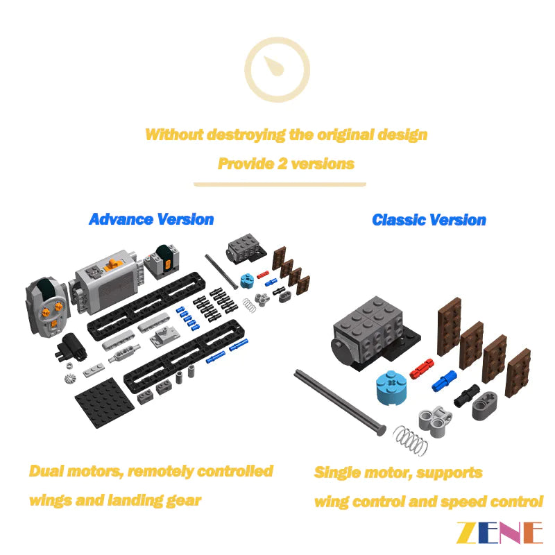 Kit Z E N E Power Functions para LEGO Dune Atreides Royal Ornithopter n.° 10327 con motor PF de baja latencia a través del teléfono móvil, alta compatibilidad con LEGO, instalación y textura fluidas. Utiliza accesorios LEGO originales para realizar modificaciones de alta calidad sin afectar la apariencia ni la diversión del diseño original. El diseño de resorte proporciona un movimiento más fluido.