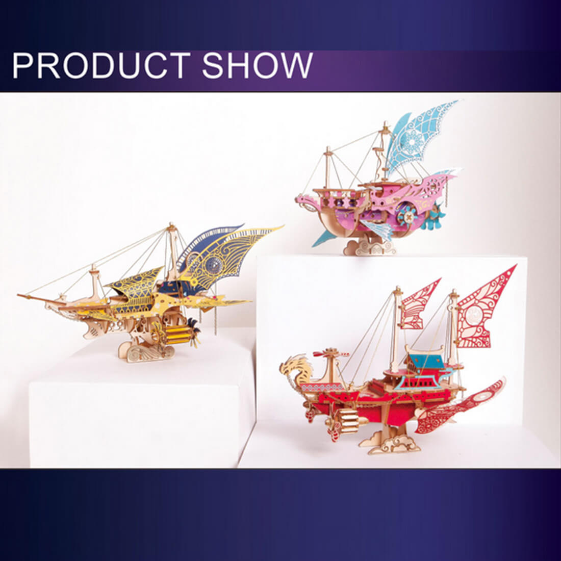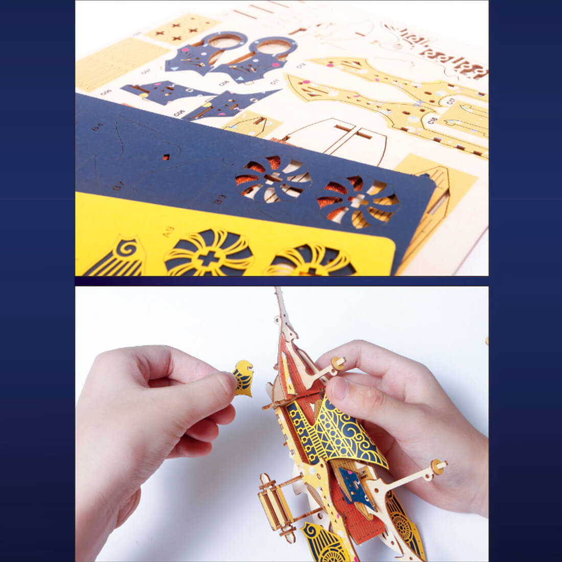 Hecho de bambú ecológico, el kit de nave espacial de fantasía adopta una estructura de mortaja y espiga, lo que lo hace fácil y seguro de jugar. Embárcate en un viaje de fantasía victoriana y steampunk.