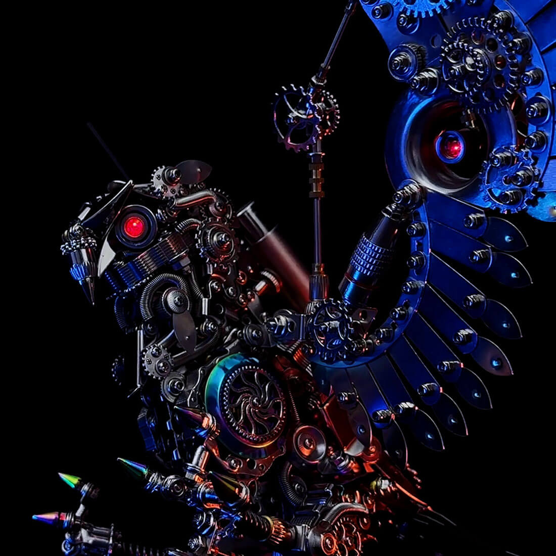 - Nuestras maquetas de metal utilizan materiales metálicos de alta calidad para garantizar la durabilidad y estabilidad del modelo. Las alas del gerifalte son especialmente llamativas, no solo por su majestuosidad al desplegarse, sino también por los diversos engranajes y piezas decorativas incrustadas. Estas detalladas piezas aportan un aire de maquinaria steampunk y futurismo. Cada articulación del modelo es móvil y su postura se puede ajustar.
