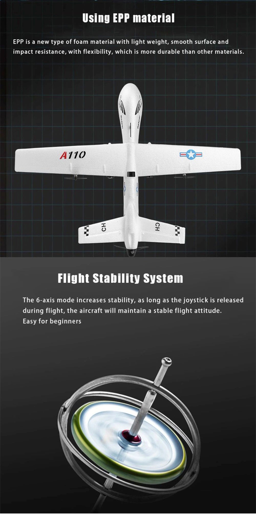 *3 canales de fácil operación, adecuado para principiantes y jugadores de juegos de vuelo intermedios.
