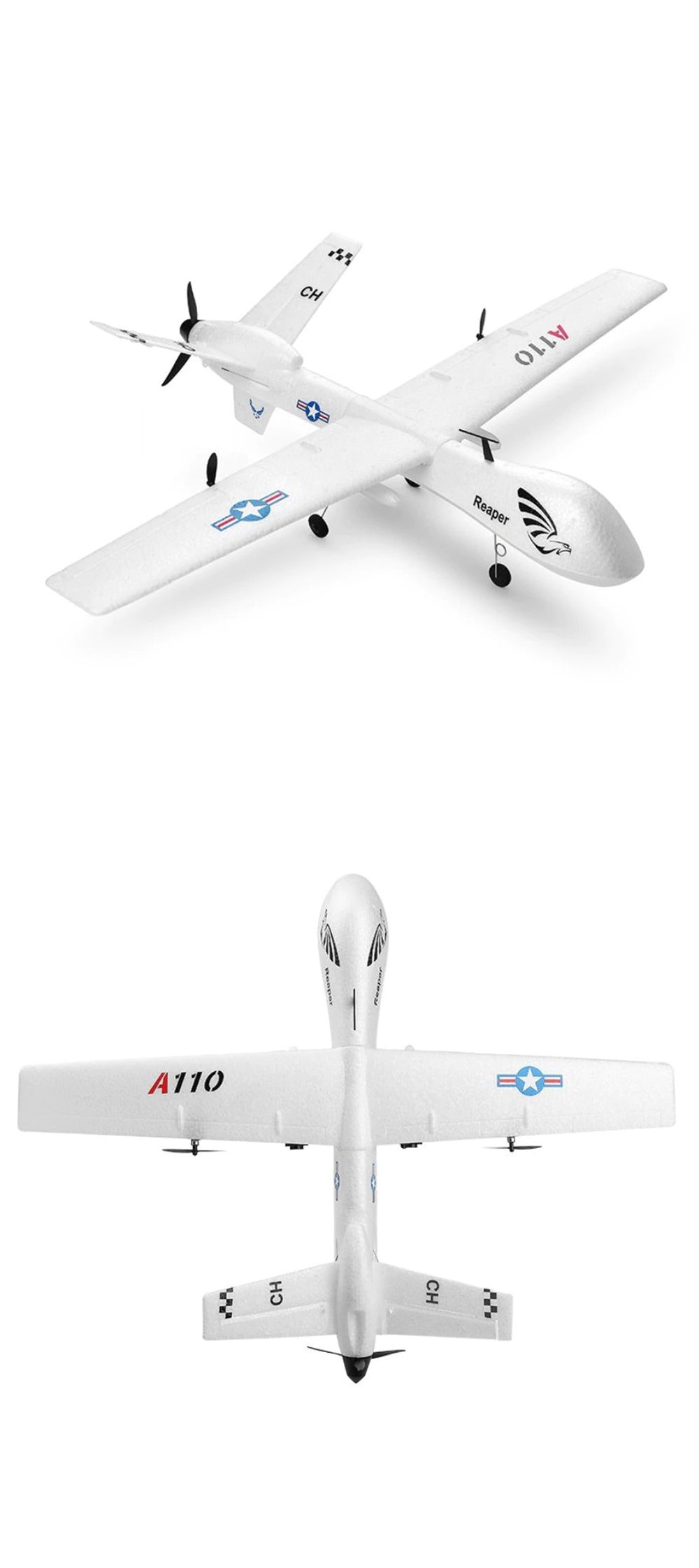 *Diseñado según el avión real WLtoys MQ9 , con apariencia blanca fría.