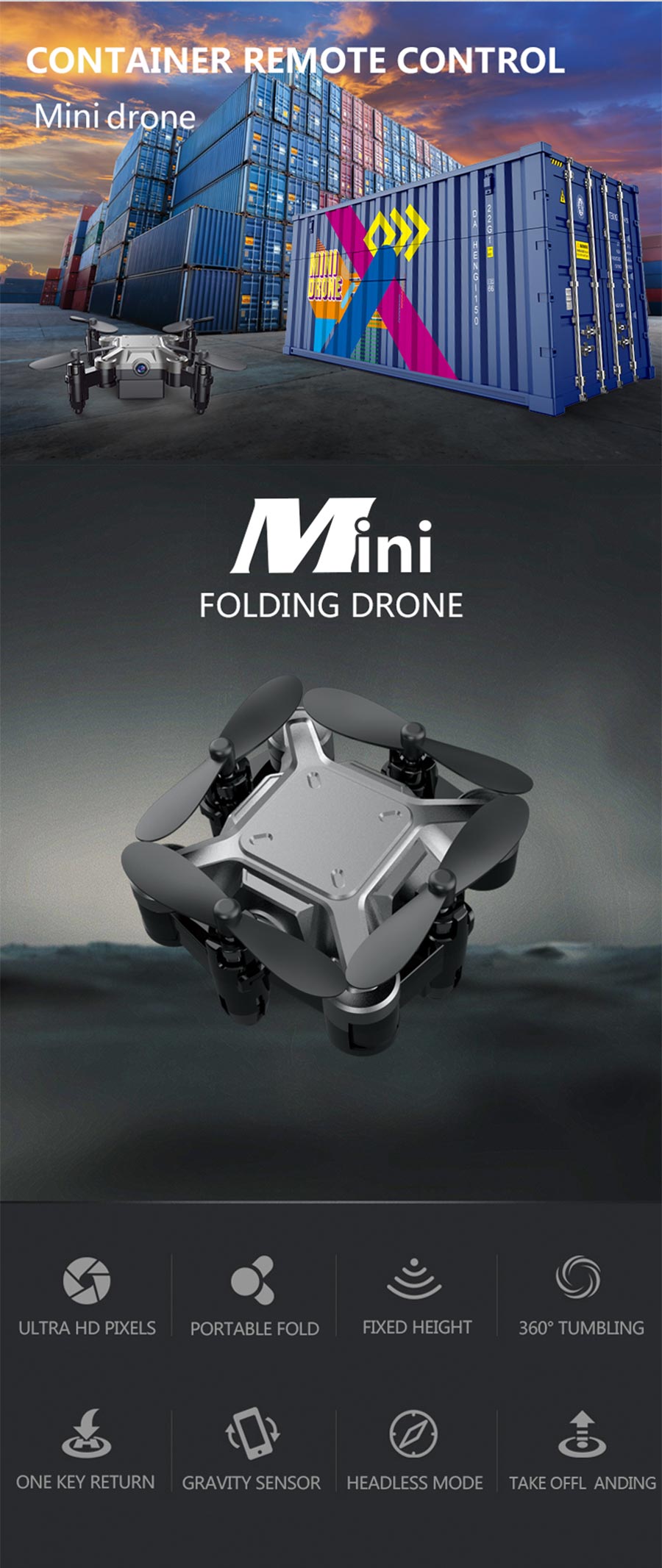- Item Desc: Container Mini Folding Quadcopter