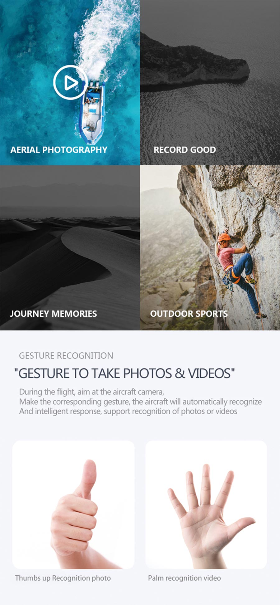 - Selling point: Foldable luggage storage/gesture photography/expandable, foldable/photograph/video function