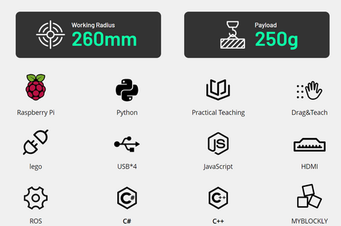 It is easy to get started and use, and the graphical programming language allows you to easily start the journey of using the robotic arm.