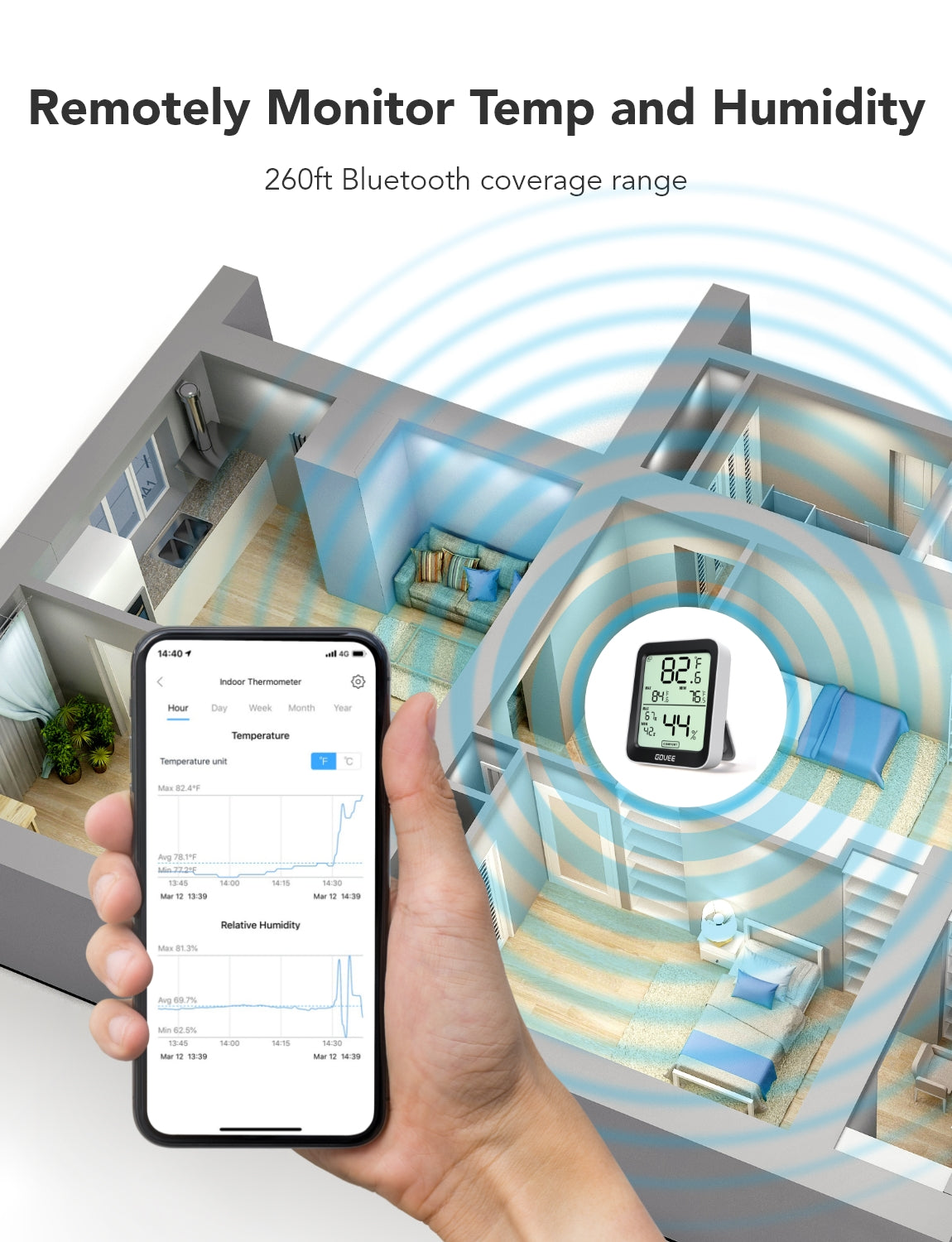 Monitor the temperature and humidity of any indoor space using the Govee Hygrometer Thermometer. Stay on track of your temperature and humidity data at any time.